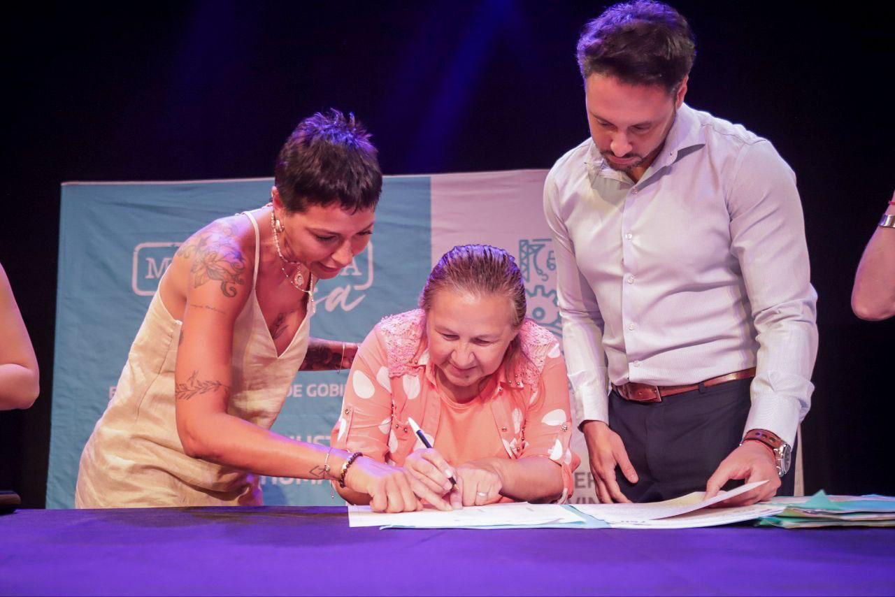 “Terminamos de firmar un nuevo leasing desde el Municipio de Quilmes con el Banco Provincia. Un banco que desde la llegada del gobernador Axel Kicillof, a quien le estamos muy agradecidos, realmente está al servicio del pueblo de la provincia de Buenos Aires y, en este caso, de los Municipios, que trabajamos articuladamente para poder incorporar herramientas de trabajo”, sostuvo Mayra.